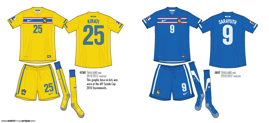 ทีมชาติไทย เปิดชุดแข่งใหม่ เมื่อประมาณวันที่ 8 พฤศจิกายน 2553 โดยจะใช้งานระหว่างปี 2010-2012 โดยประเดิมด้วย การแข่งขันฟุตบอลชิงแชมช์แห่งชาติอาเซียน AFF Suzuki Cup 2010 โดยรอบแรกแข่งที่ประเทศ อินโดนีเซีย จำนวน 3 นัด ส่วนรอบรองฯ แข่งแบบเหย้า เยือน รวมถึงรอบชิงชนะเลิศ หวังเหลือเกินครั้งนี้ไทยเราคงสมหวังซะที