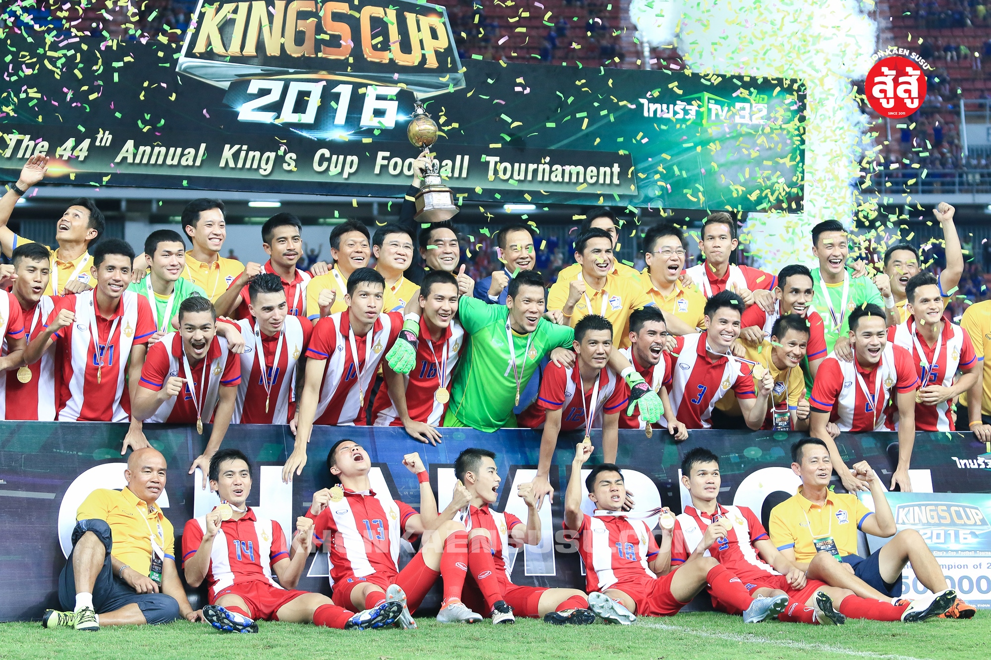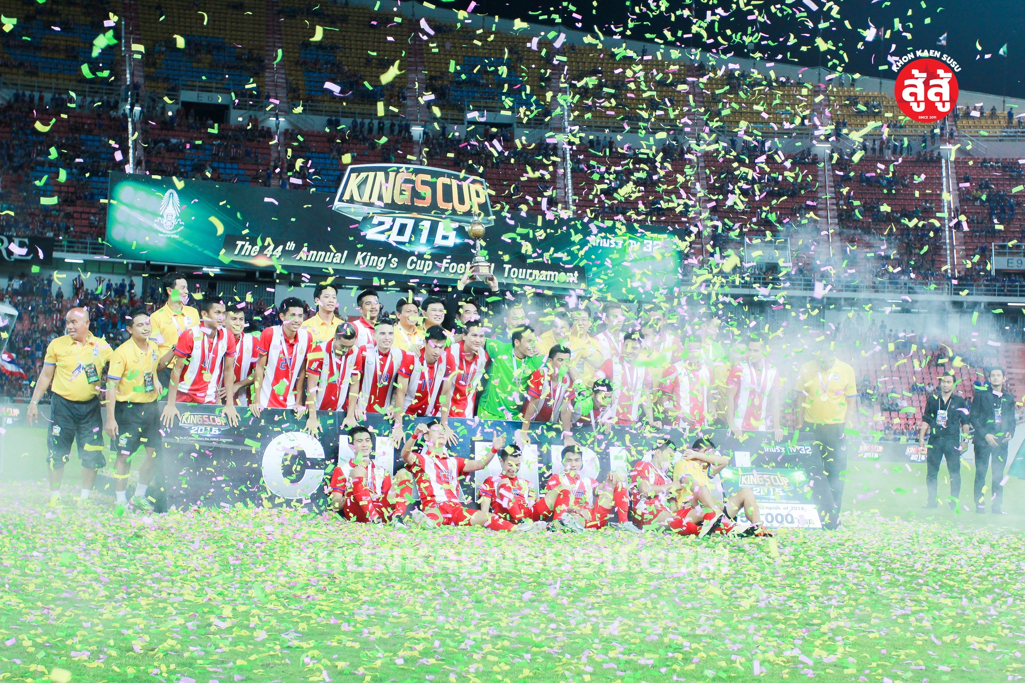 สุดท้าย เอาบรรยากาศการฉลองแชมป์ คิงส์คัพ หลังทีมชาติไทยเข่นจอร์แดน 2 ต่อ 0 คว้าแชมป์คิงส์คัพ ในรอบ 9 ปี ฉลองชุดแข่ง 100 ปี