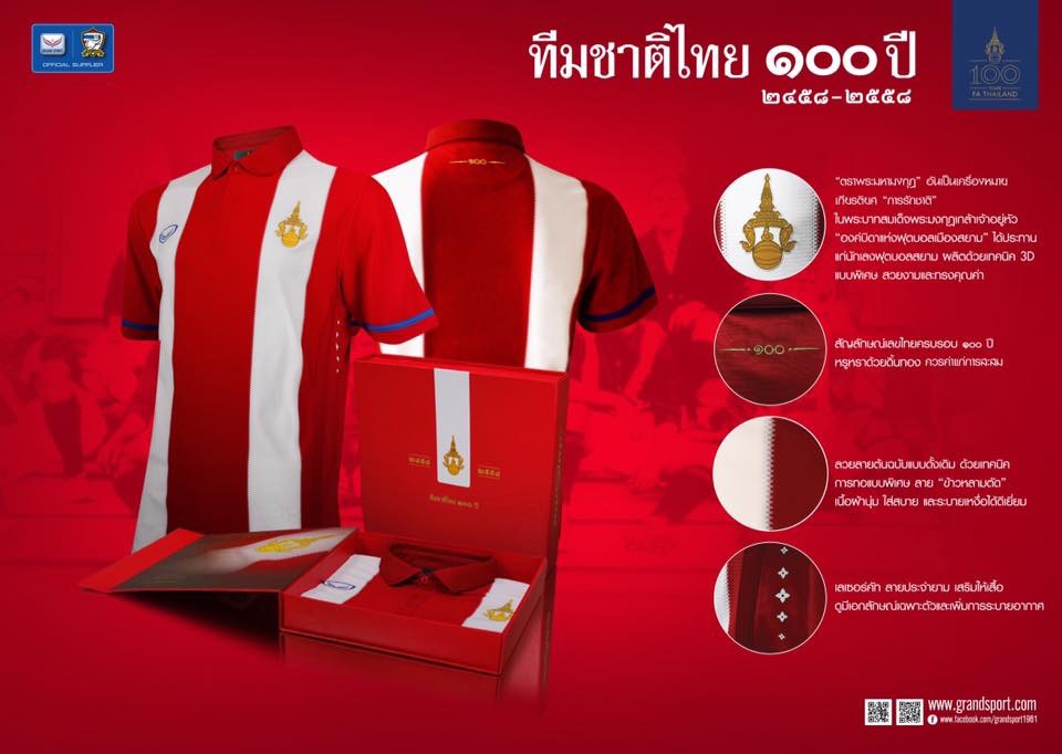 เสื้อฟุตบอลทีมชาติไทย ๑๐๐ ปี โดยแกรนด์สปอร์ตเวอร์ชั่นนี้ จะใช้ใส่ในการแข่งขันฟุตบอลชิงถ้วยพระราชทานคิงส์คัพ ครั้งที่ 44 วันที่ 3 – 5 มิถุนายน 2559 ณ สนามราชมังคลากีฬาสถาน โดย บริษัท แกรนด์สปอร์ต กรุ๊ป จำกัด ในนามผู้สนับสนุนสมาคมกีฬาฟุตบอลแห่งประเทศไทย ได้รับสิทธ์ในการออกแบบและผลิตแต่เพียงผู้เดียว