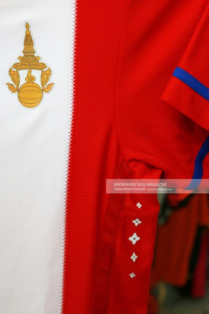 ผลิตด้วยเนื้อผ้า ZILKY TEXT เนื้อผ้านุ่ม สวมใส่สบาย ลวดลายด้านหน้าพิมพ์ลายขาวแดงเสมือนงานต้นฉบับ คมชัดสวยงาม บนอกเบื้องซ้ายปัก “ตราพระมหามงกุฎ” อันเป็นเครื่องหมายเกียรติยศ “การรักชาติ” ในพระบาทสมเด็จพระมงกุฎเกล้าเจ้าอยู่หัว “องค์บิดาแห่งฟุตบอลเมืองสยาม” ได้ประทานแก่นักเลงฟุตบอลสยาม